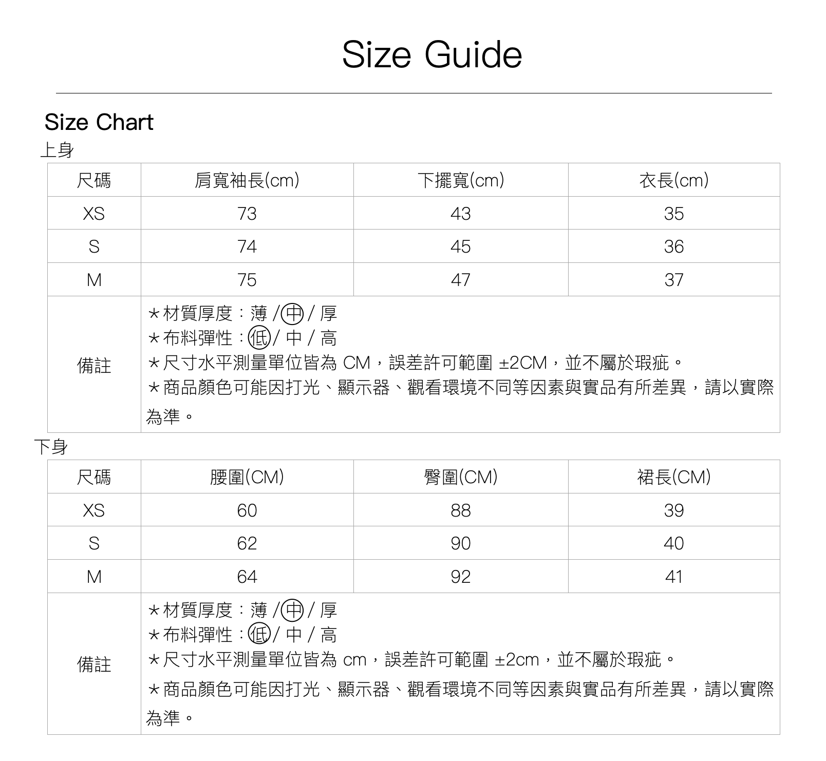 尺寸|XS \ S \ M