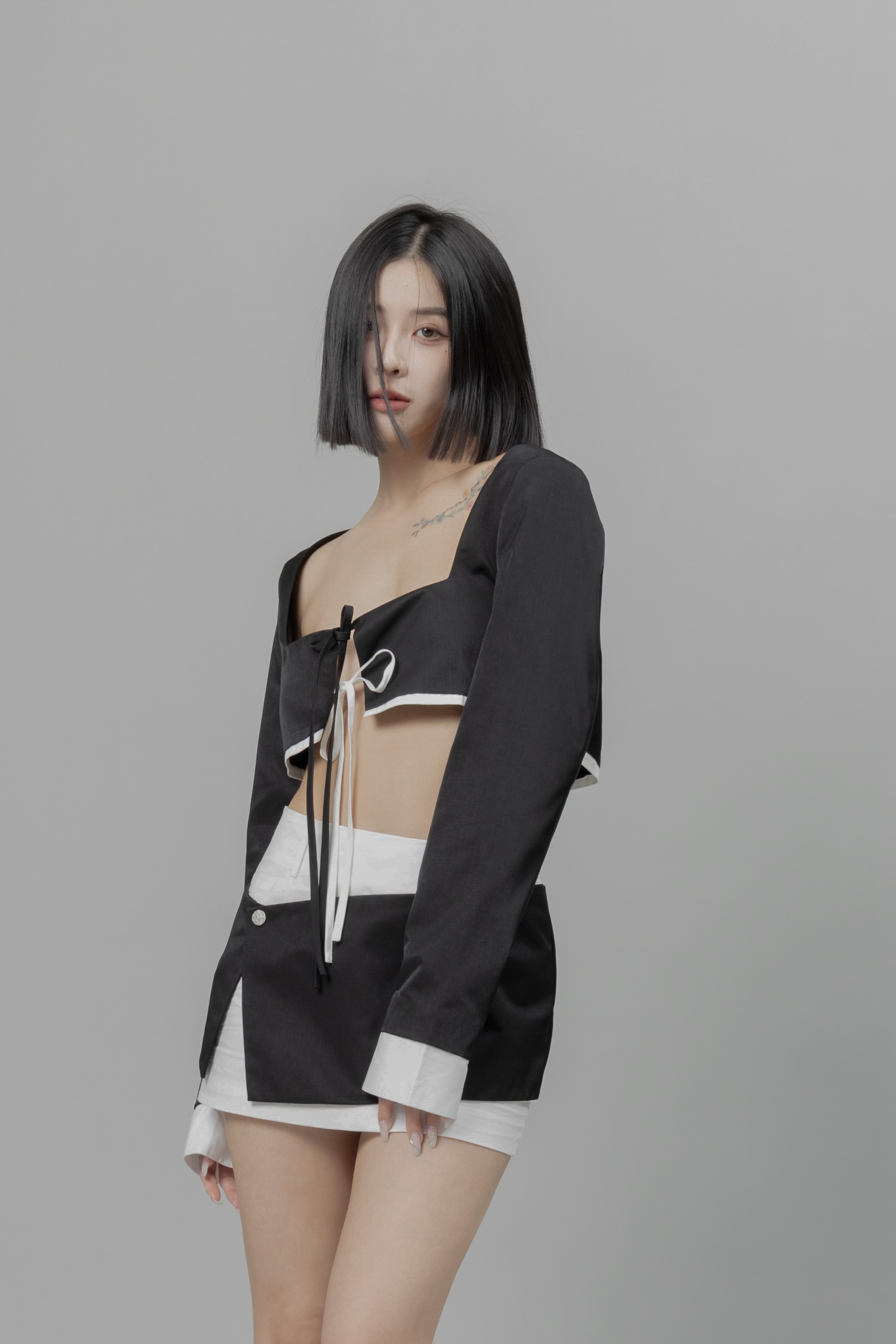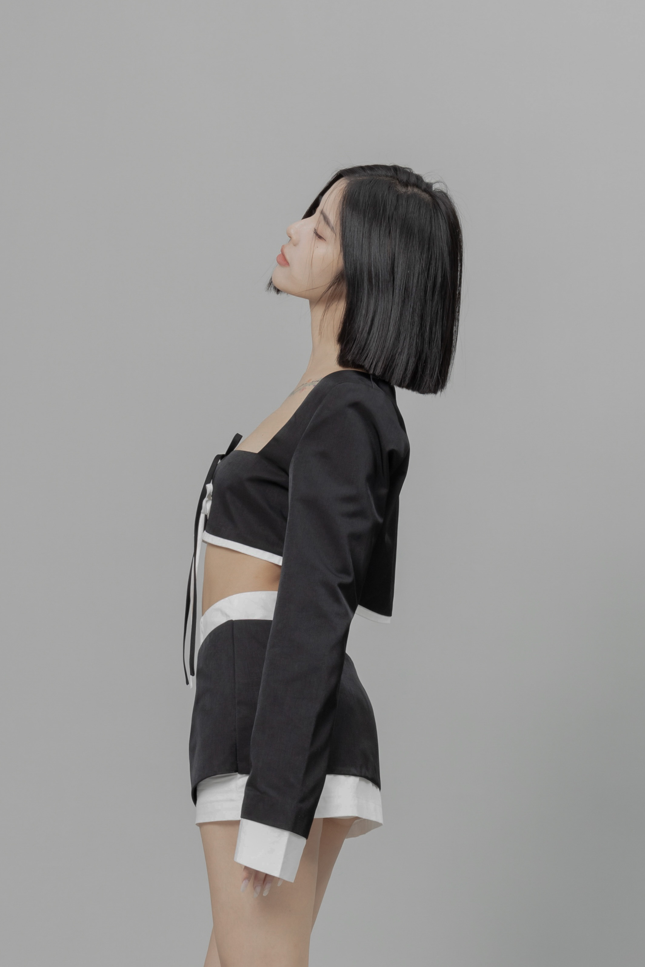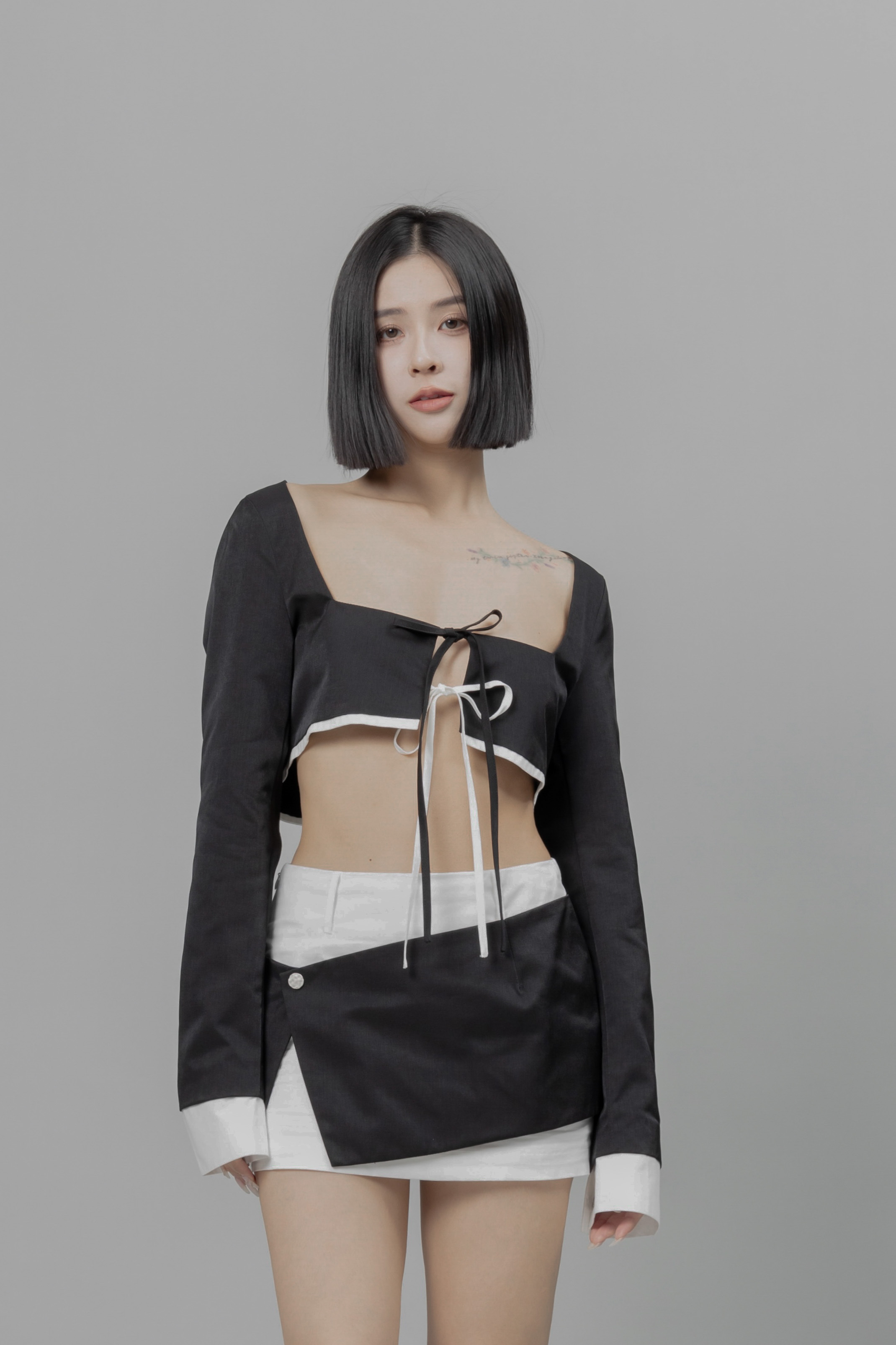 胸前雙綁帶、設計感、短版修飾
