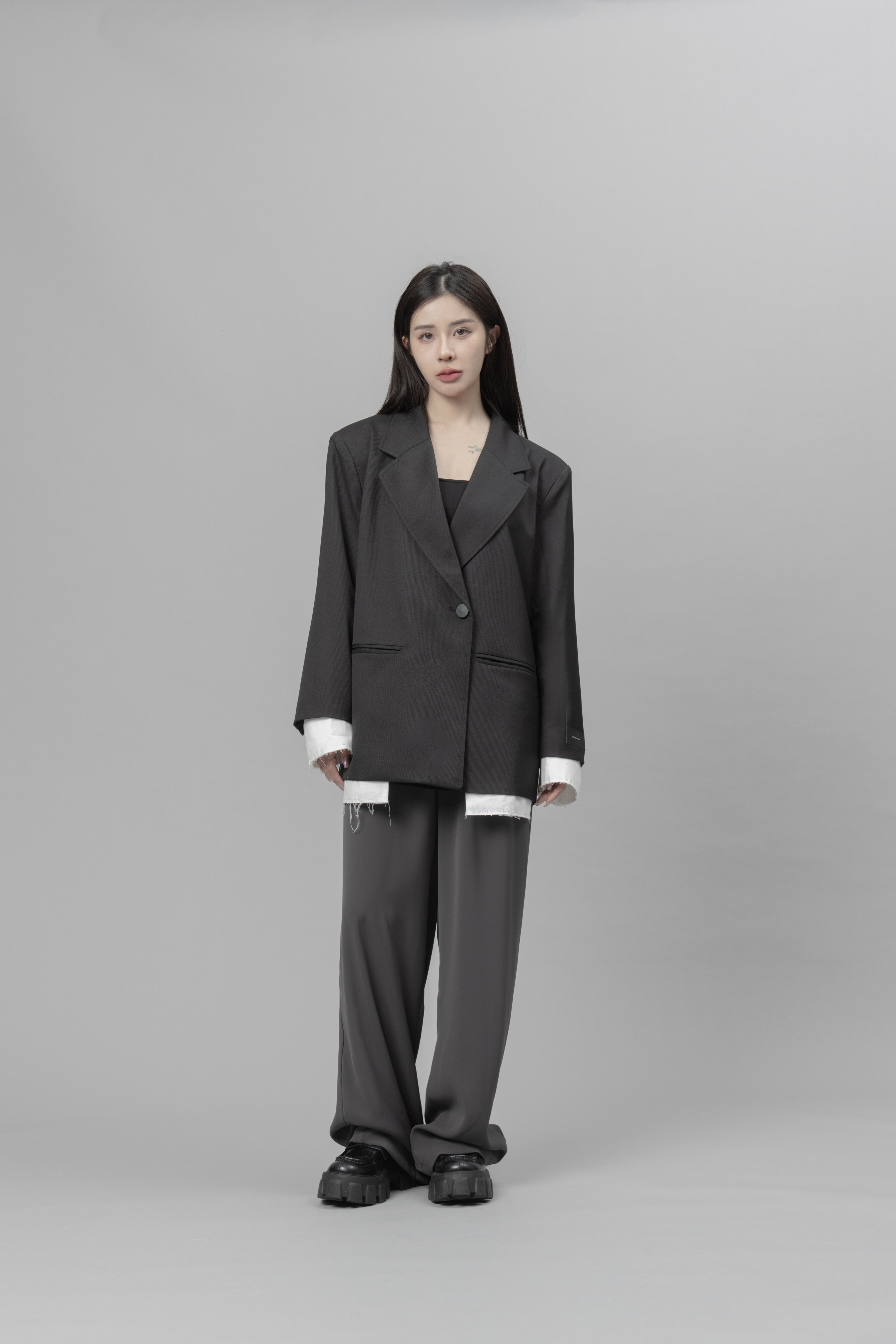 寬鬆休閒、刷破感、品牌皮標、重疊設計、oversize版型