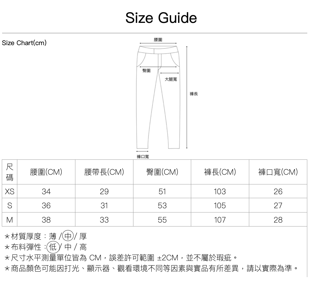 尺寸|XS \ S \ M