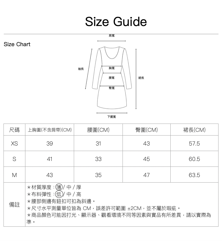 尺寸|XS \ S \ M