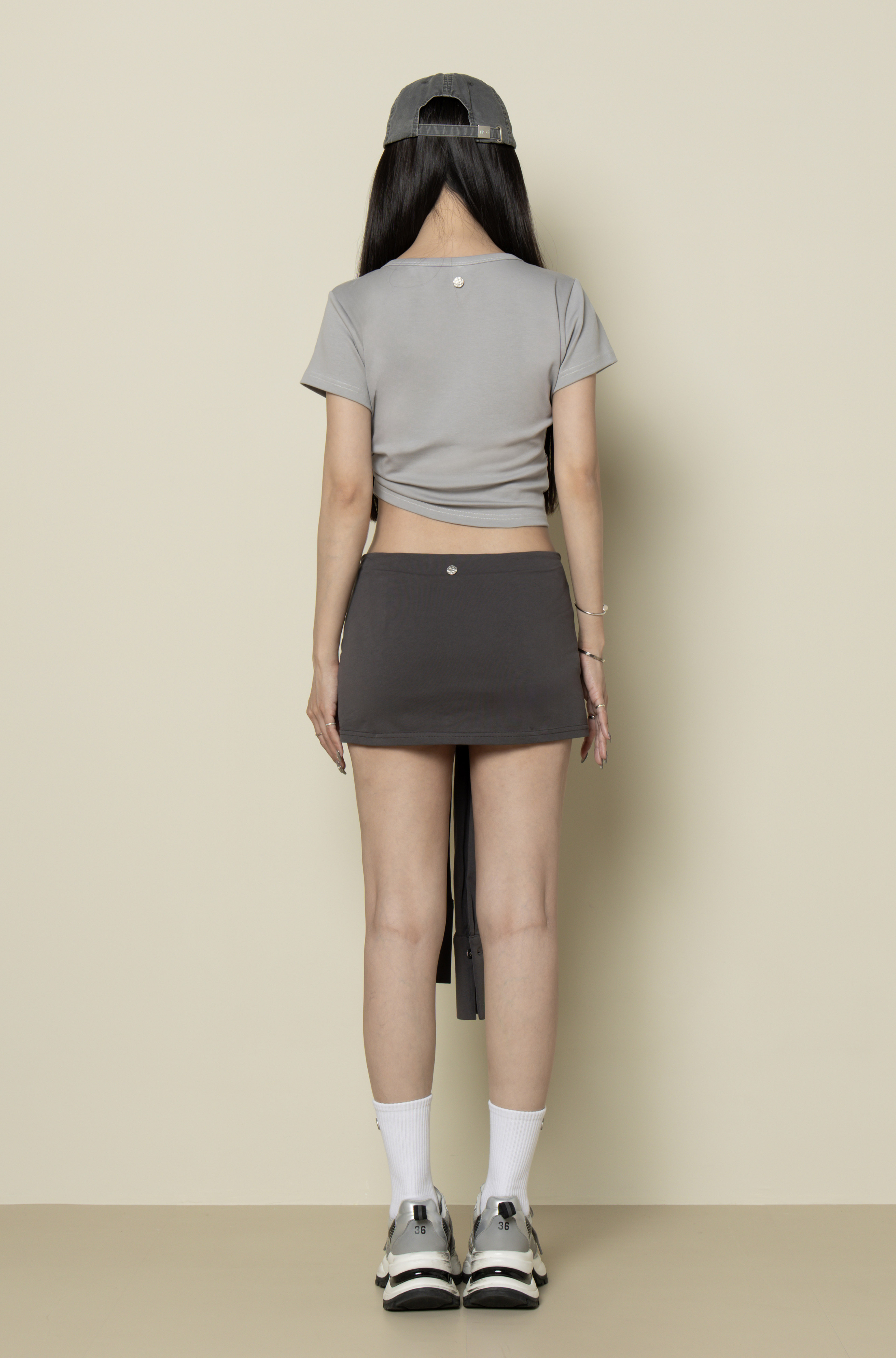 SS0893 - 灰色抓皺彈性短T