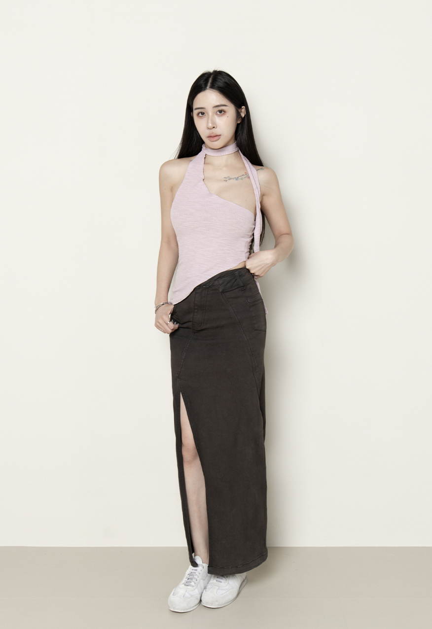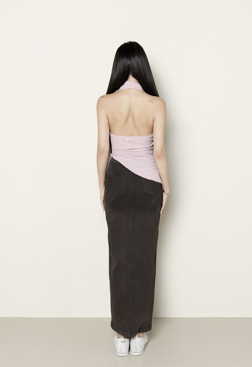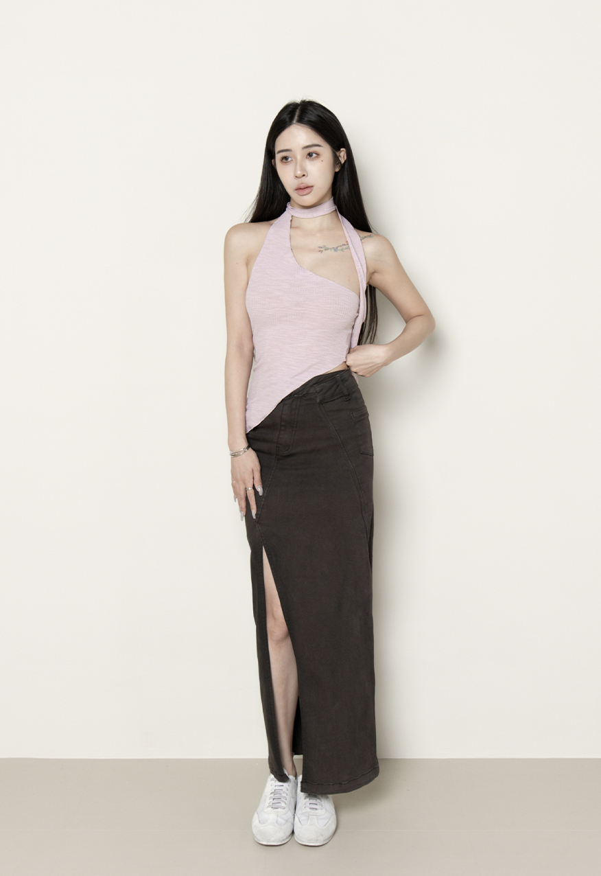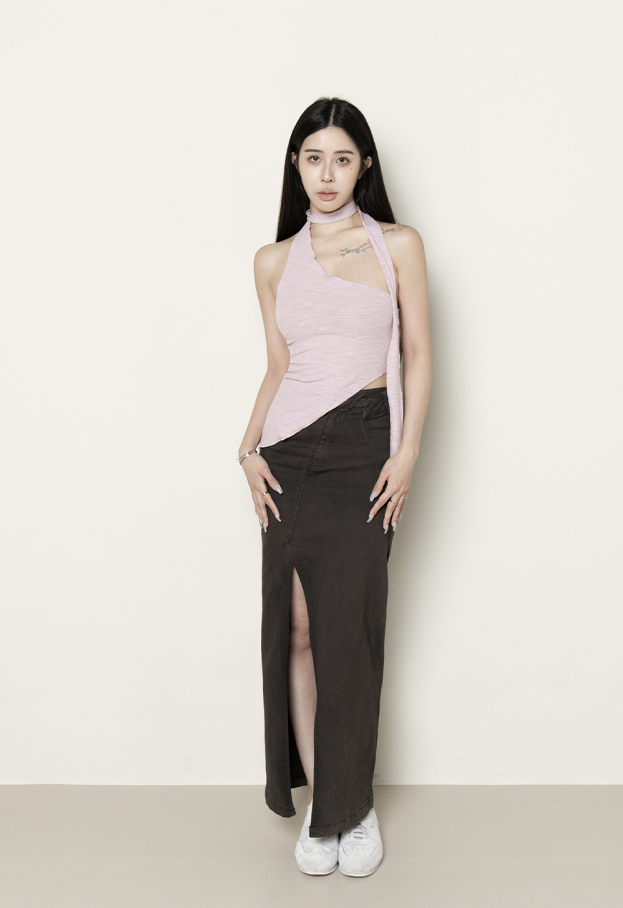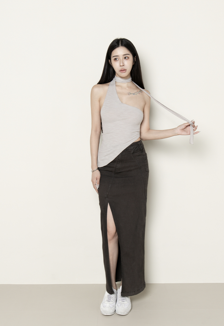 不對稱單肩設計、斜裁剪裁、腰部綁帶細節、個性感時尚感