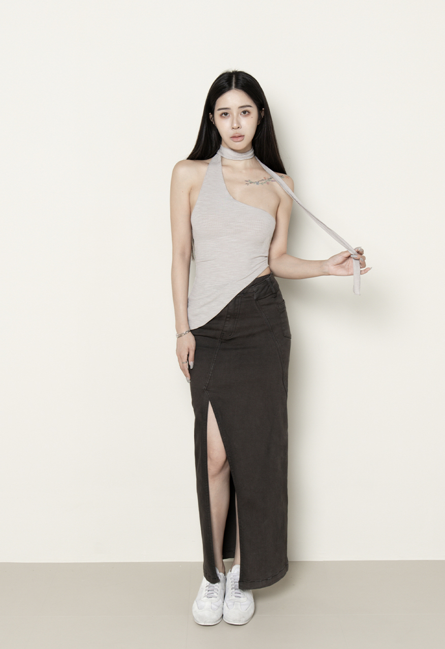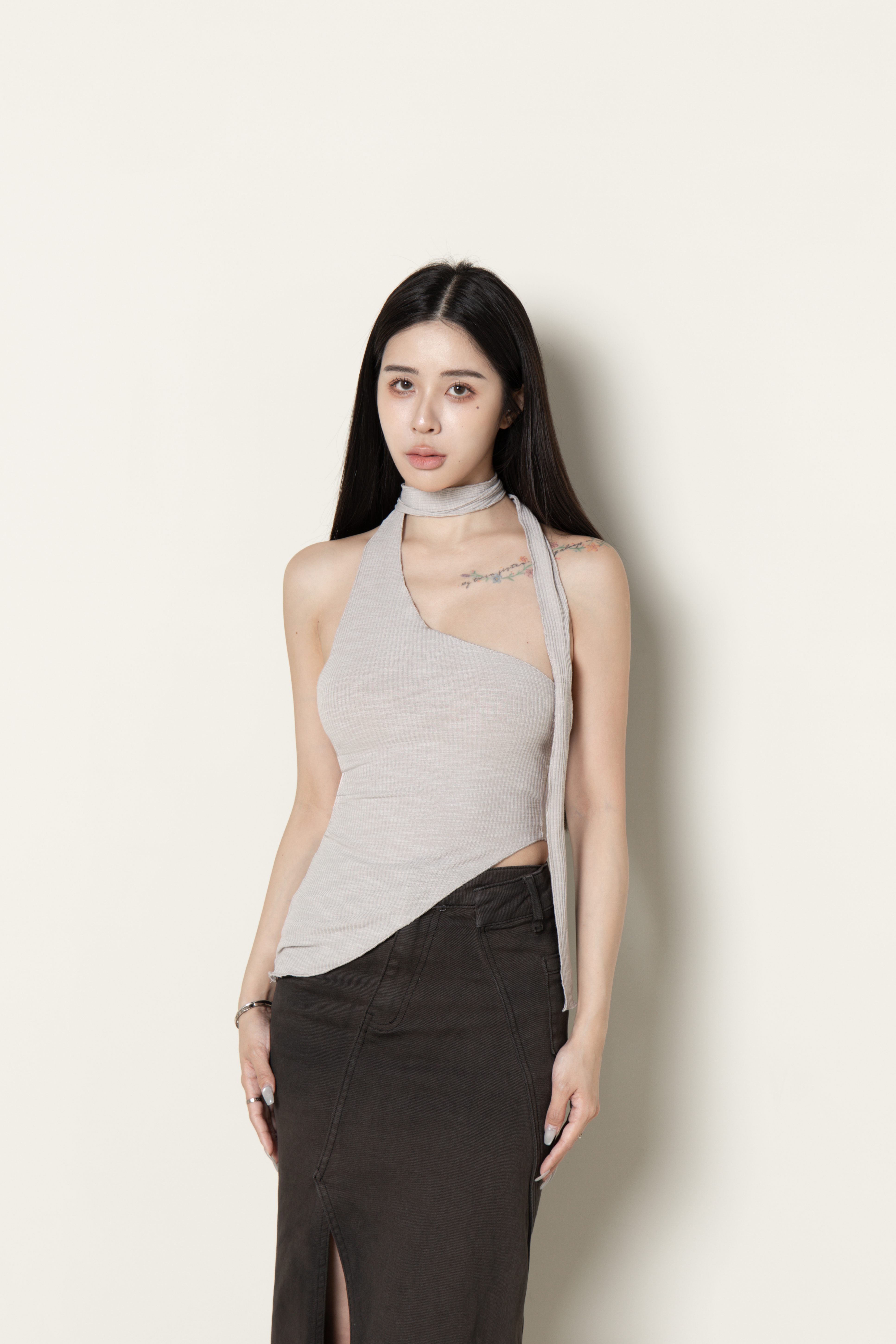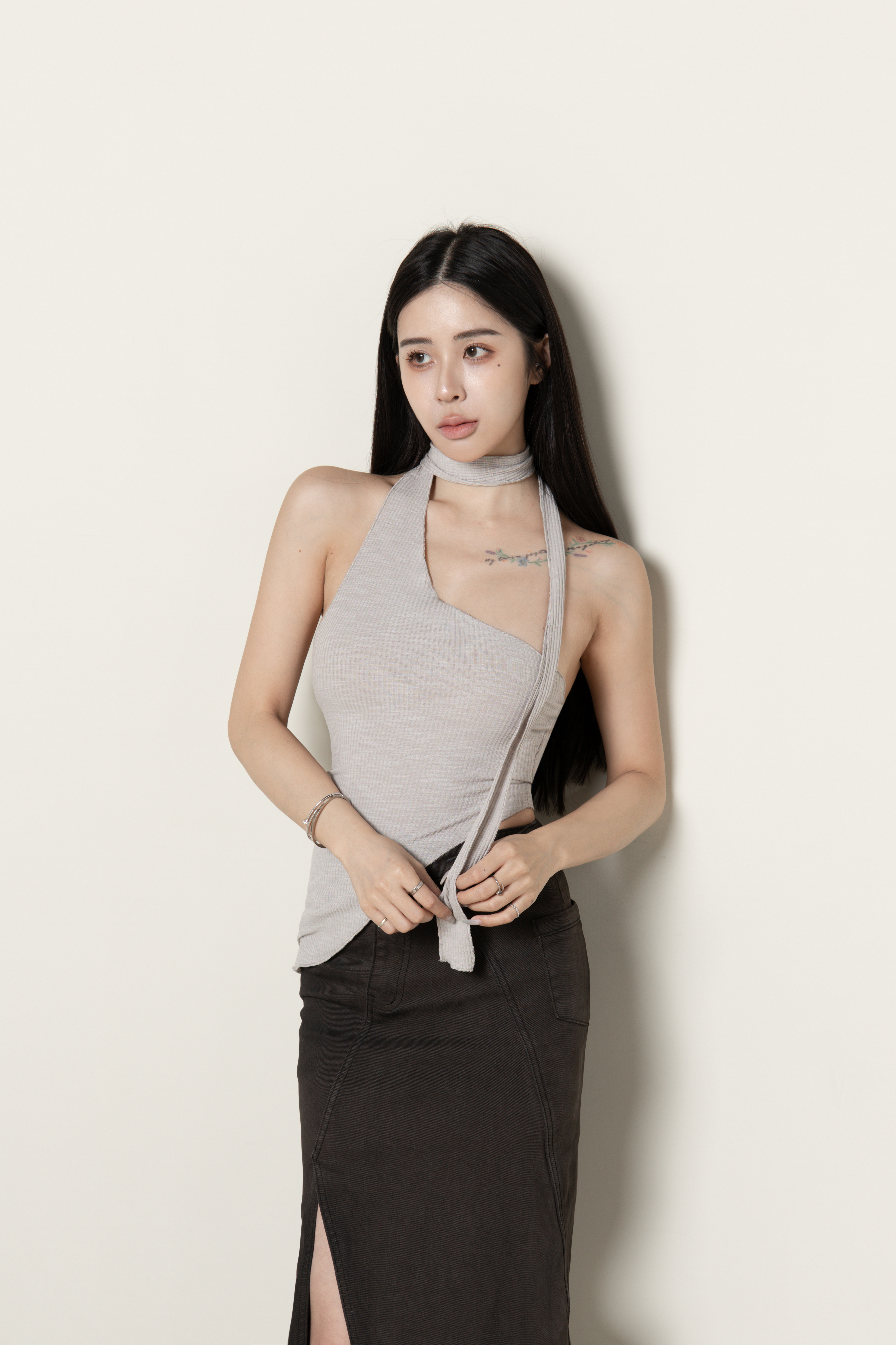 不對稱單肩設計、斜裁剪裁、腰部綁帶細節、個性感時尚感