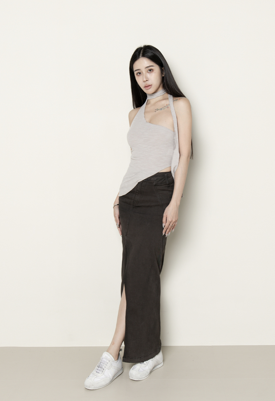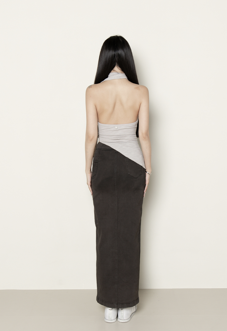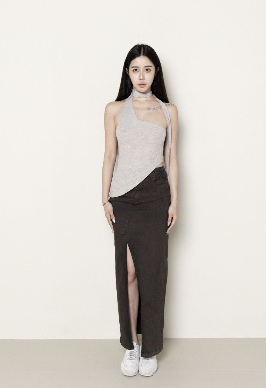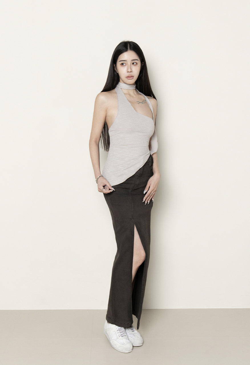 不對稱單肩設計、斜裁剪裁、腰部綁帶細節、個性感時尚感