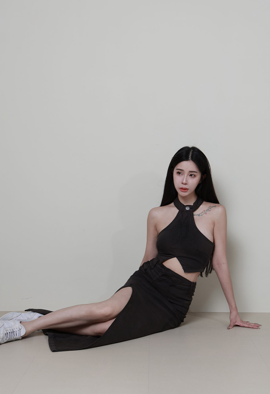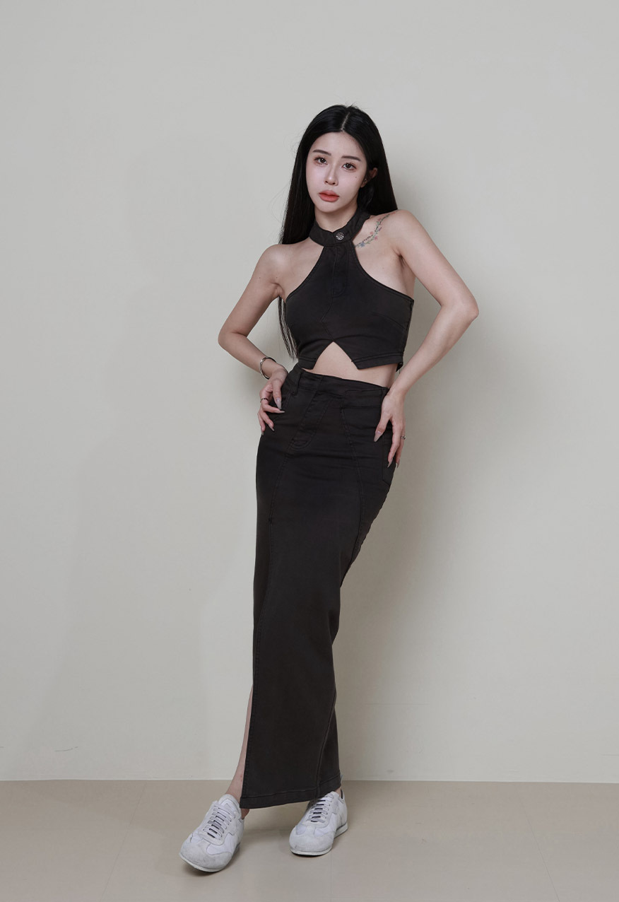 SS0995 - 繞脖不對稱牛仔Bra Top