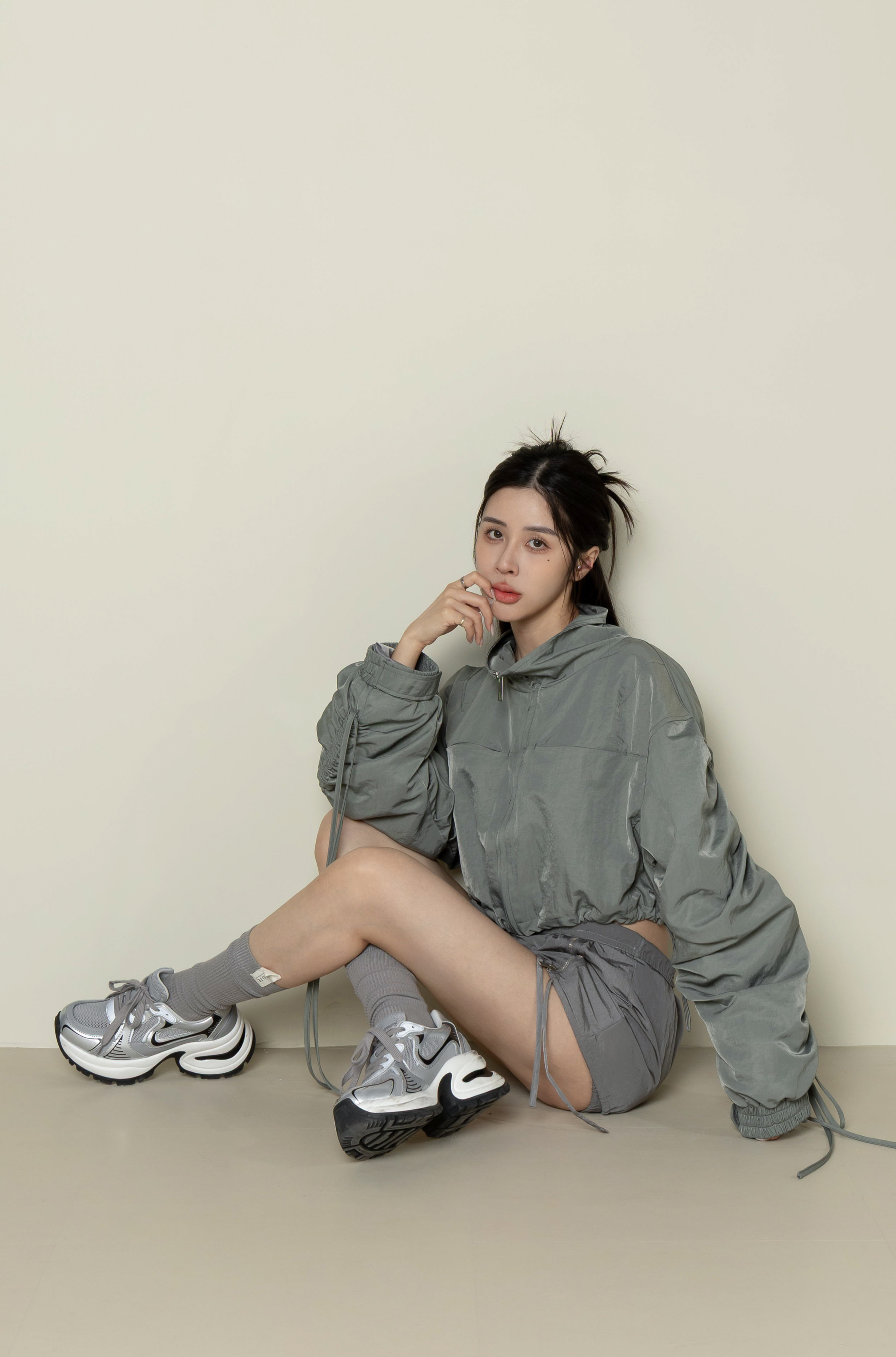 SS1000 - 軍灰色短版束繩外套