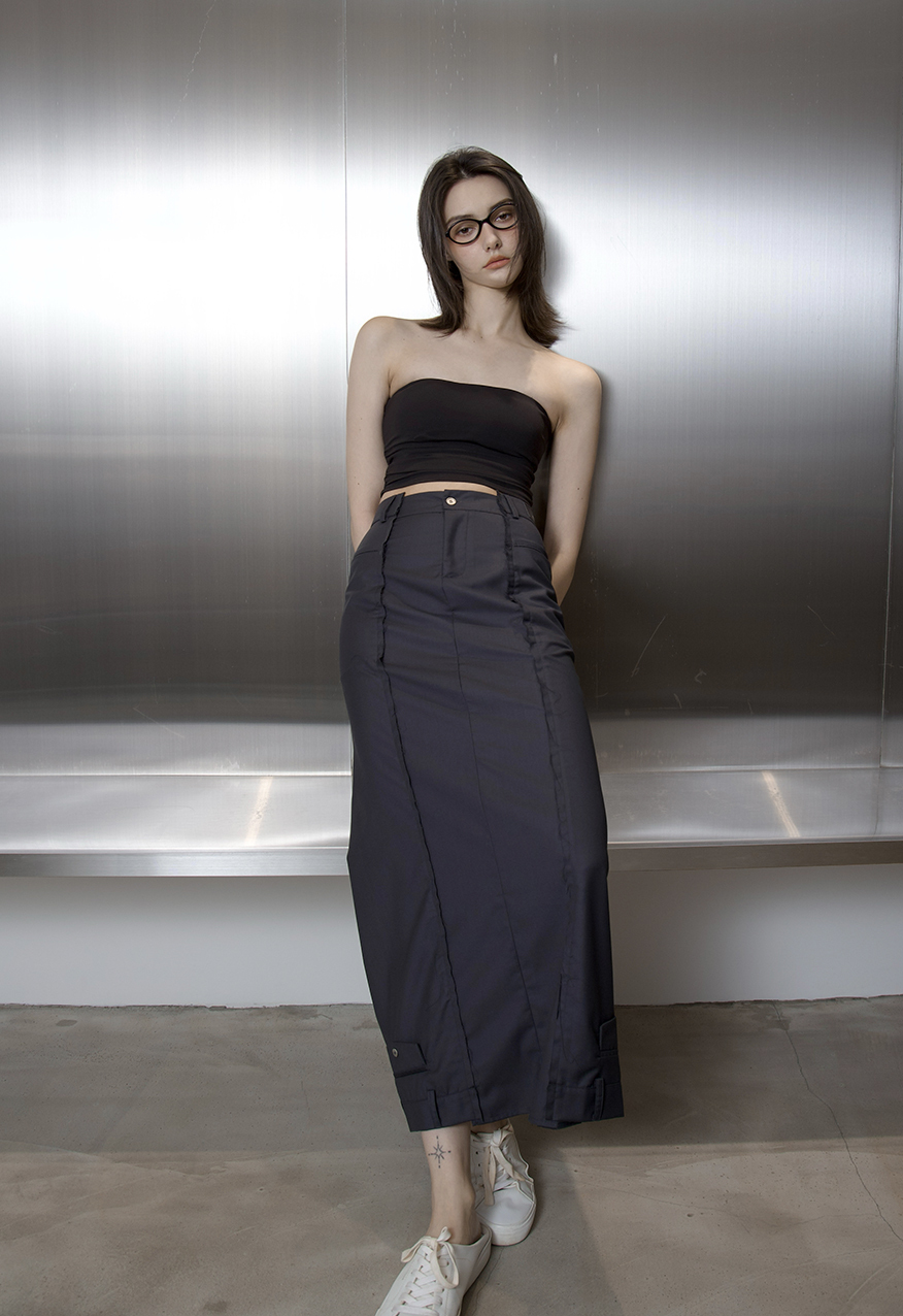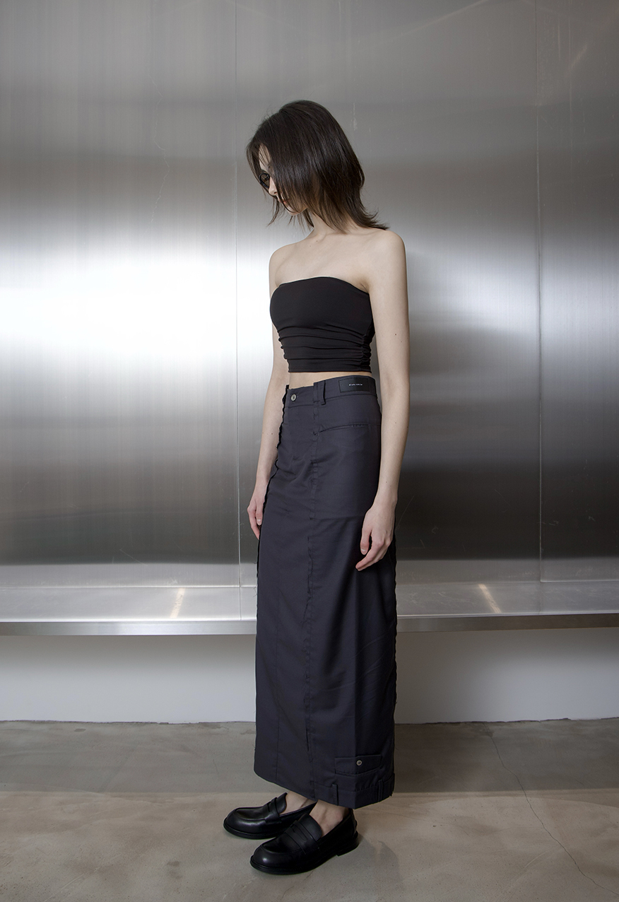 彈性貼身、極簡平口、短版剪裁、下擺微收褶