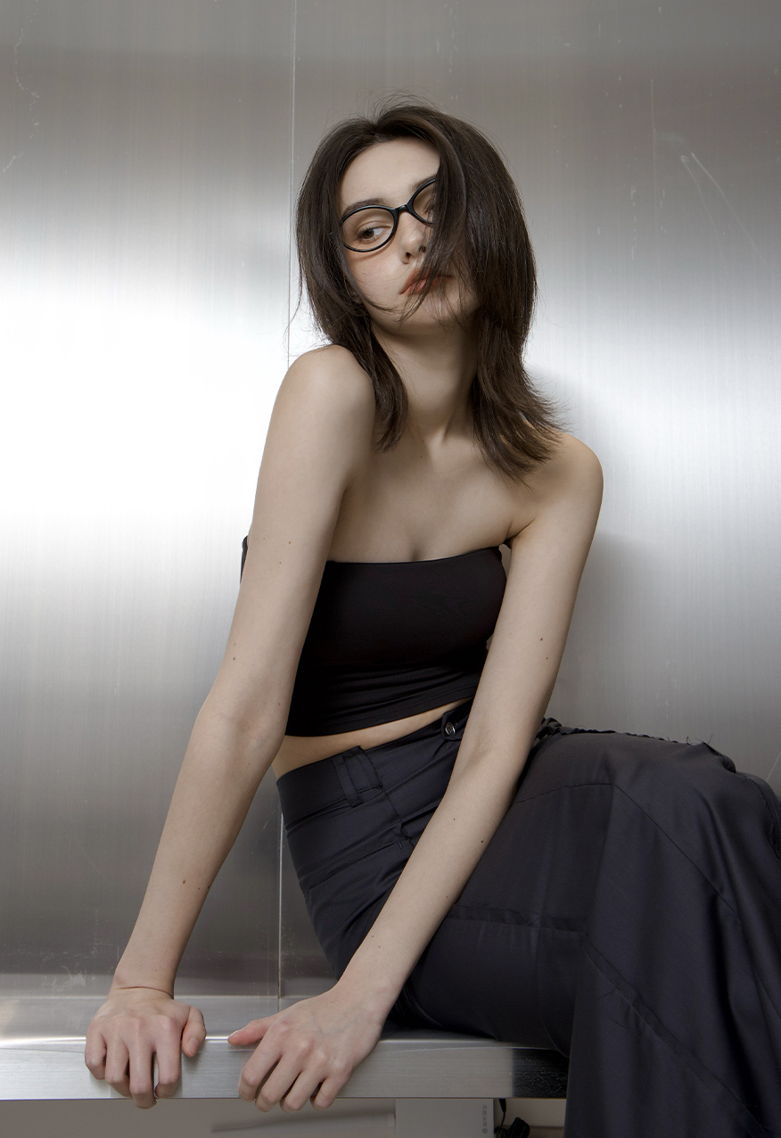 SS1019 - 漫畫女主 午夜黑抓皺平口Bra Top