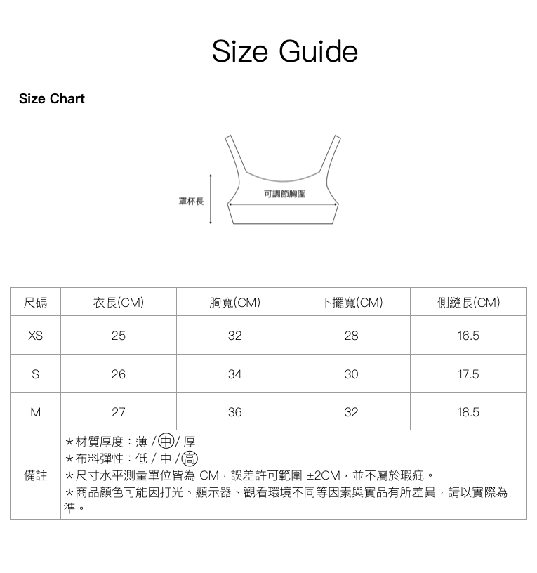 尺寸| XS \ S \ M