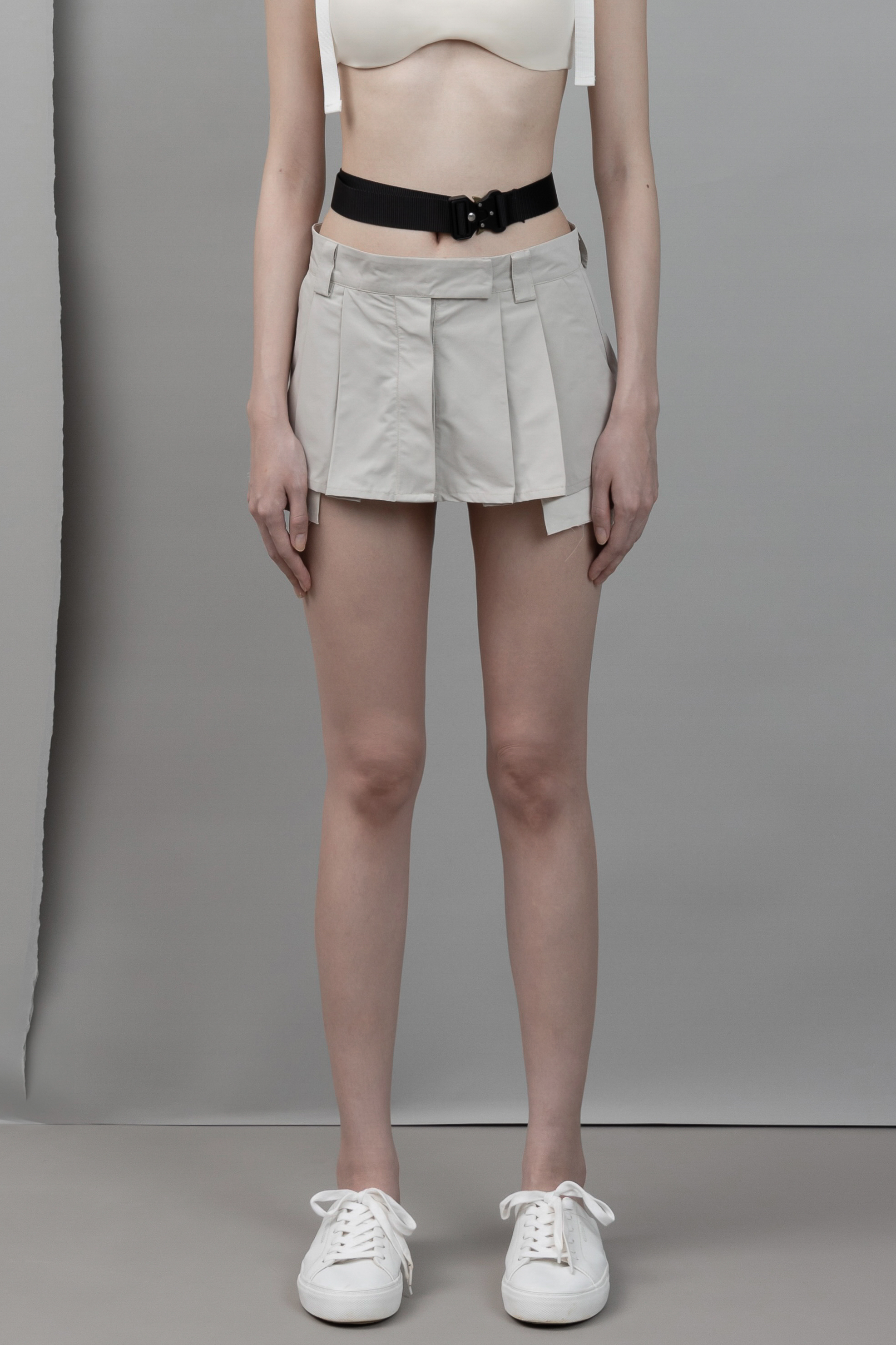 Unrestrai - 燕麥奶色腰帶扣環短裙