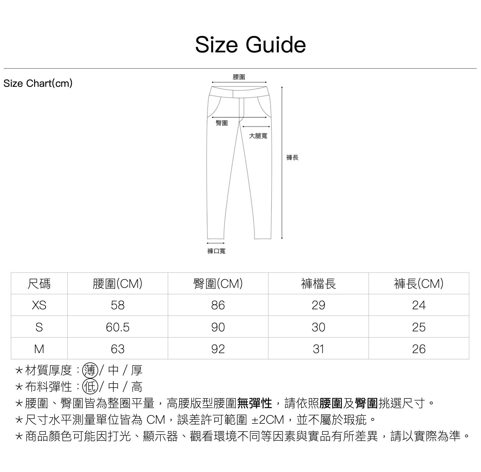 尺寸| XS \ S \ M