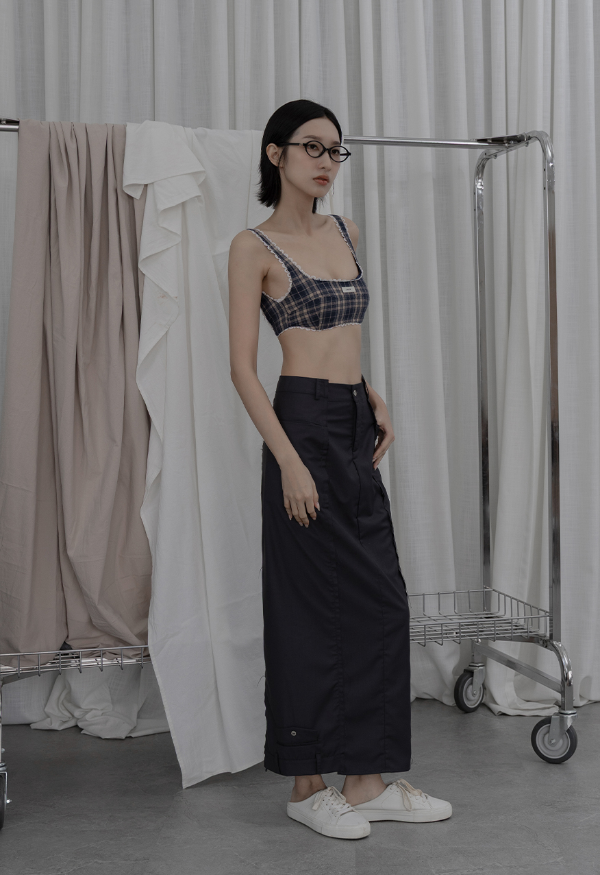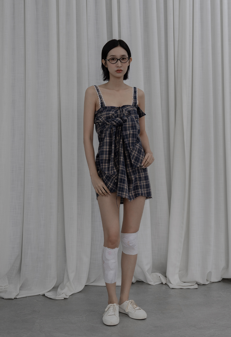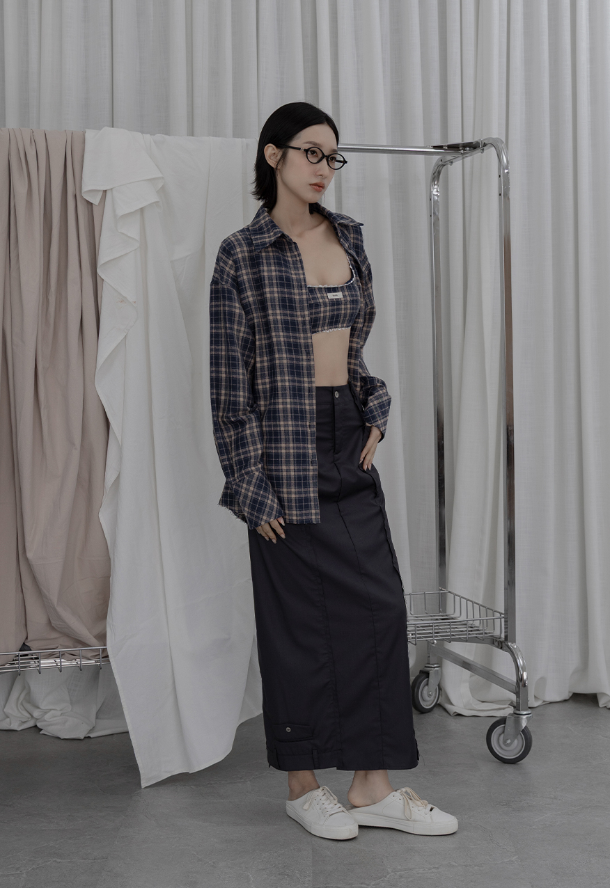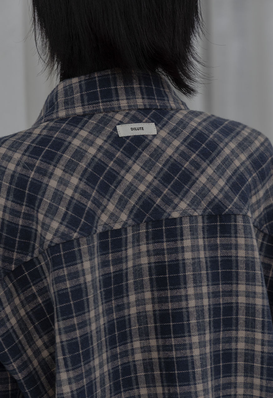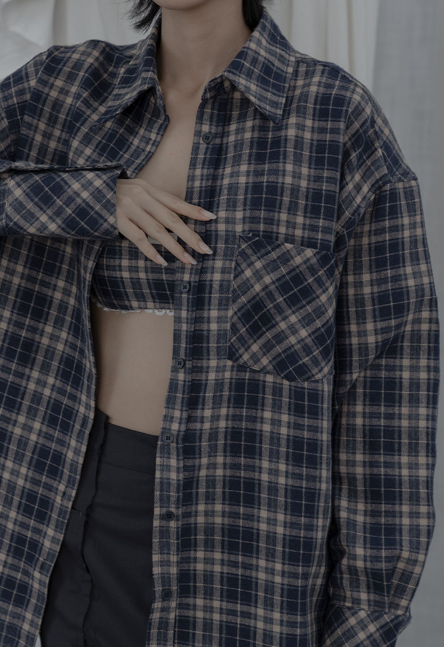 AW1038 - 做舊霧藍格紋襯衫套裝