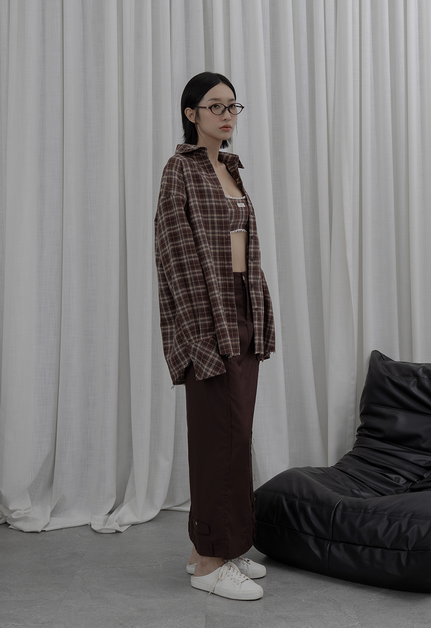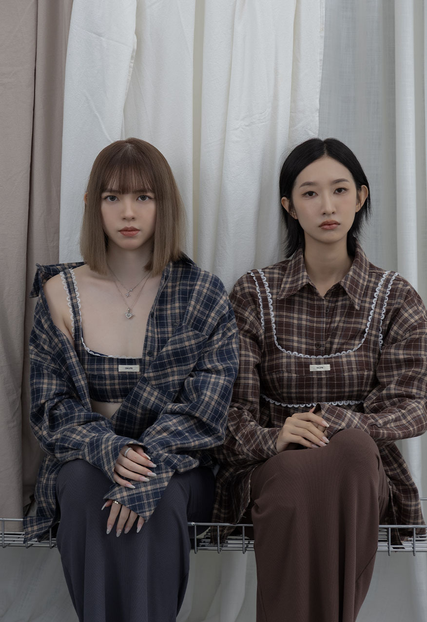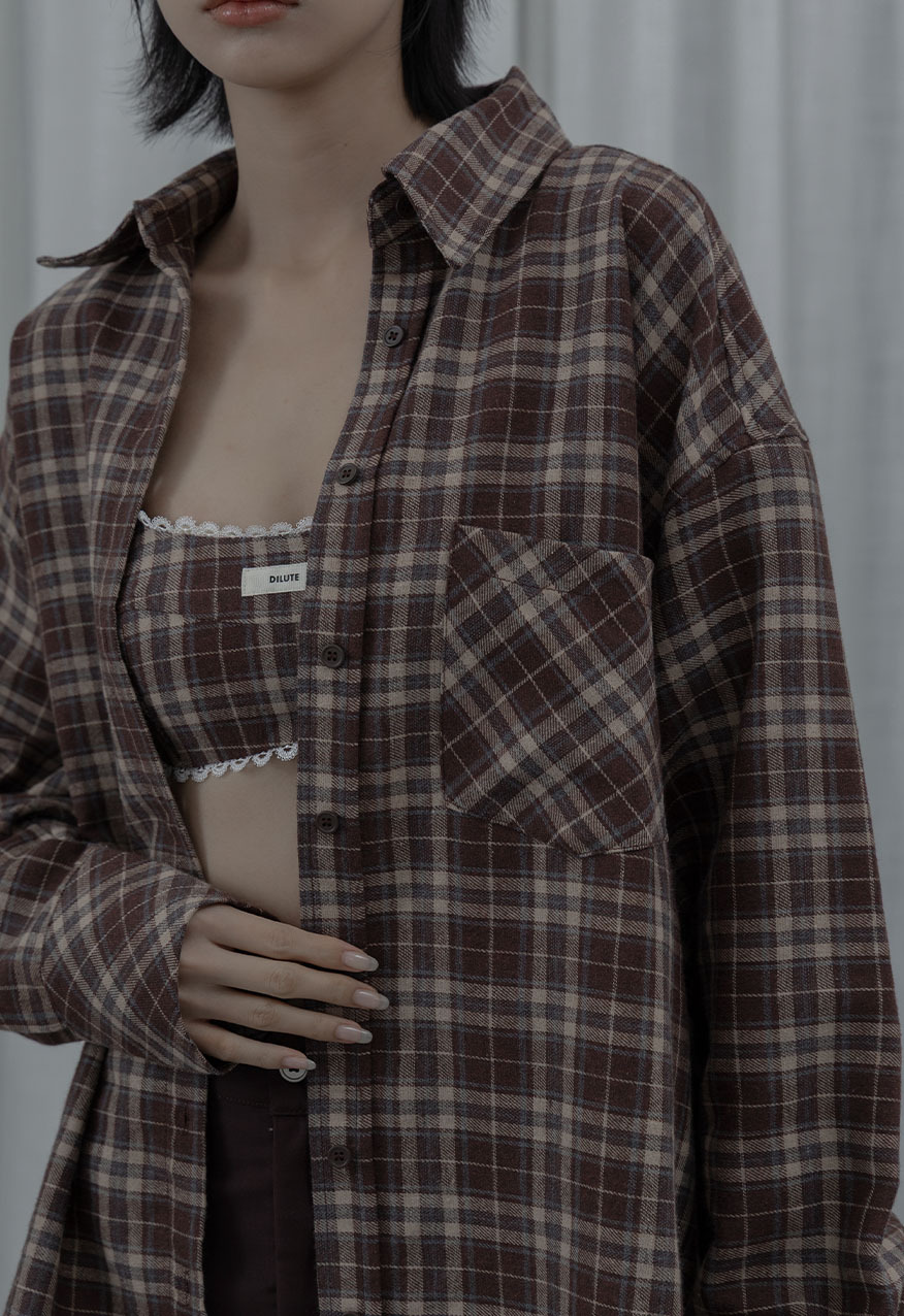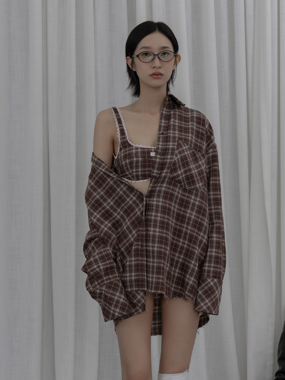 AW1039 - 做舊烤糖格紋襯衫套裝