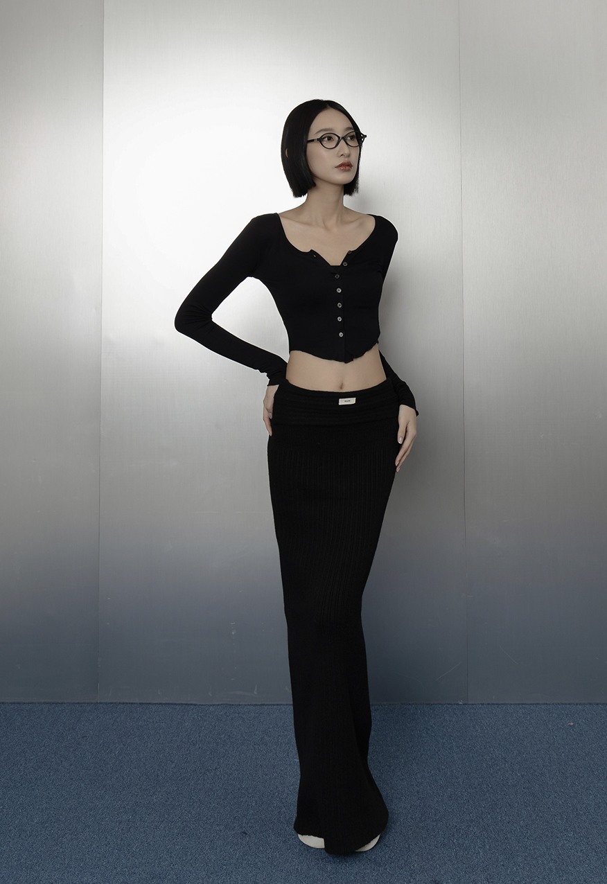 AW1205-深夜黑柔軟厚針織長裙