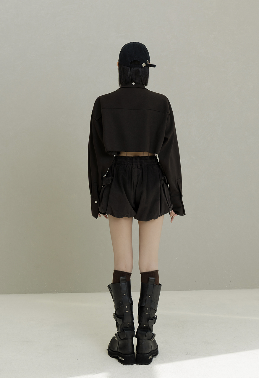 AW1119-迷霧黑雲朵牛仔短褲裙