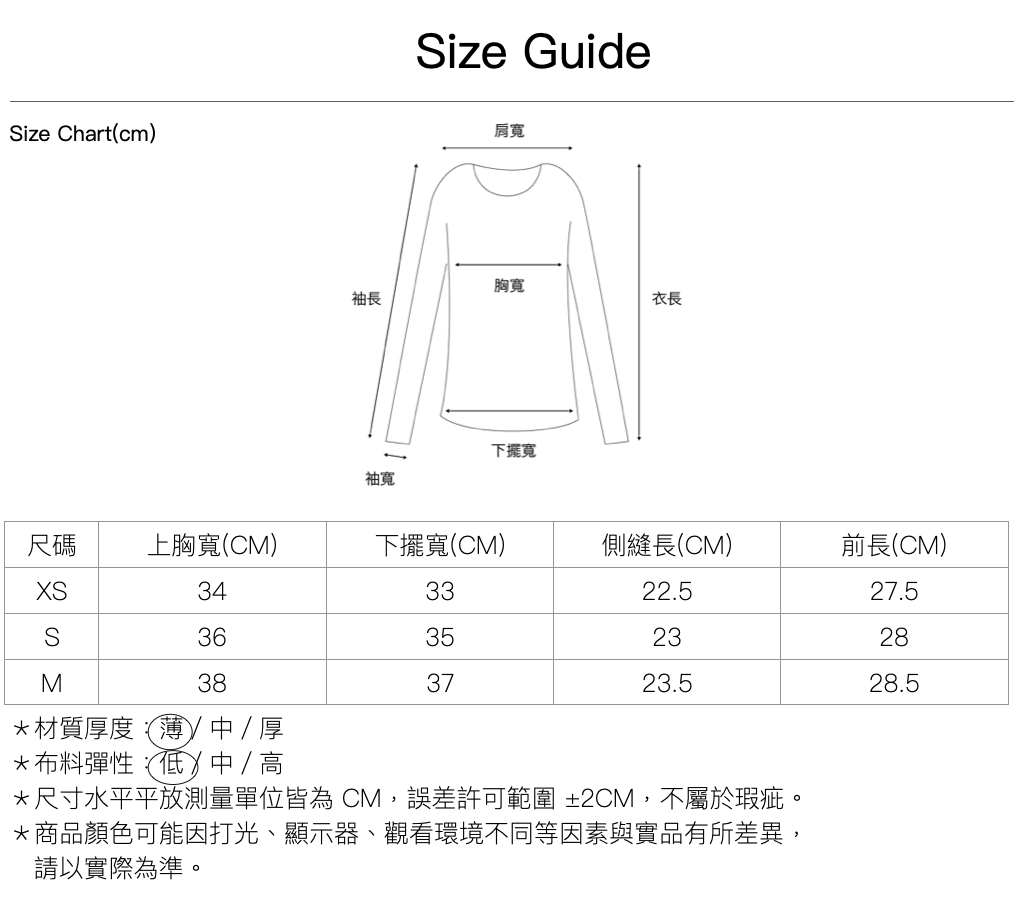 尺寸|XS \ S \ M